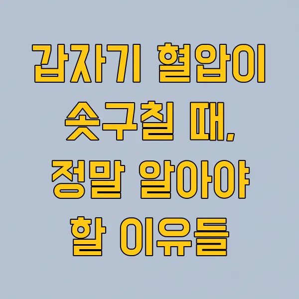 혈압이 갑자기 높아지는 이유는 정말 다양하죠? 단순한 스트레스나 식습관부터 약물 부작용, 날씨 변화까지, 우리 몸은 참 많은 외부 자극에 반응해요. 가장 중요한 건 내 몸의 변화를 잘 살피고, 이상 신호가 왔을 때 무시하지 않는 거예요.